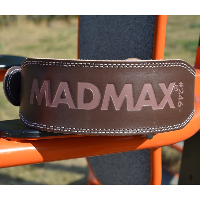 Призначення: пояс підходить для роботи на тренажерах і з металом MFB-246 Повністю шкіряний ремінь Верхній шар виконаний з високоякісної шкіри товщиною 5 мм. Внутрішня сторона пояса виконана з м'якого чорного матеріалу амара. Пояс оснащений зручною прокладкою, яка забезпечує дуже приємні та комфортні заняття. Кепка оснащена двома шипами та шкіряним кільцем для фіксації вільного кінця. Колірні варіанти: шоколадно-коричневий Таблиця розмірів поясів MadMax Пояси Модель XS S M L XL XXL Шкіряні пояси MFB-244 Sandwich 62-80 72-90 82-100 92-110 102-120 MFB-245 Black MFB-246 Brown MFB-999 Restless 63-90 67-95 79-106 87-114 100-125 Неопренові пояси MFB-421 Simply 62-77 72-87 82-97 92-107 97-112 102-117 MFB-666 Extreme MFB-313 Bodyconform 58-75 68-85 78-95 88-105 93-110 98-115 MFB-314 WMN Conform 48-65 58-75 68-85 78-95 Пояси для паверліфтингу MFB-301 Prong Belt 56-85 64-92 74-102 84-112 92-120