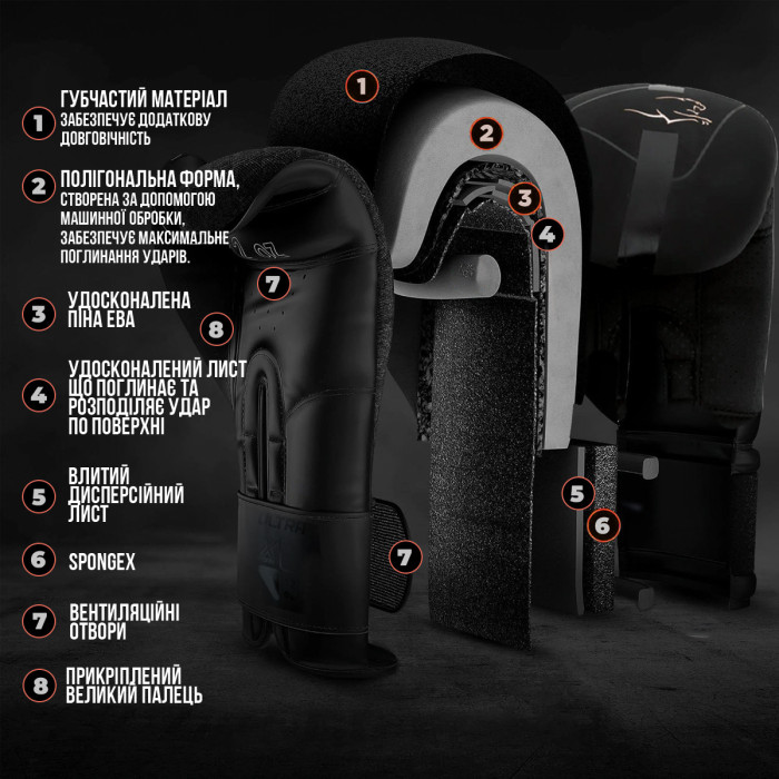Боксерські рукавиці PowerPlay 3024 Ultra Mat Чорні 10 унцій