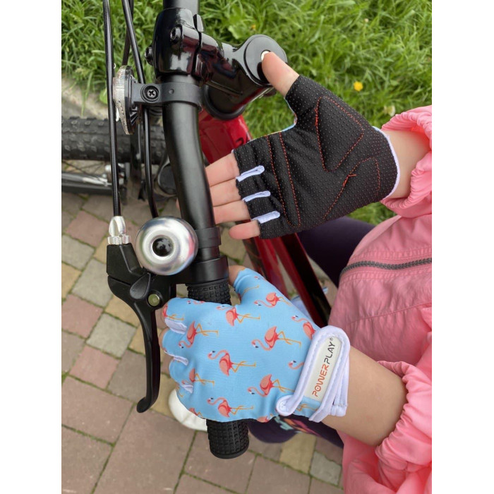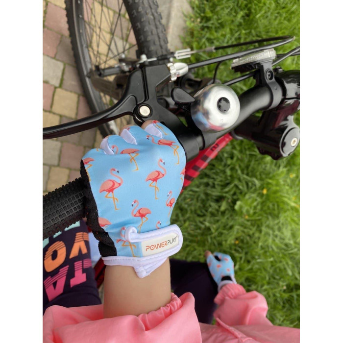 Велоперчатки PowerPlay 001 Фламинго Голубые 2XS (возраст до 4 лет)